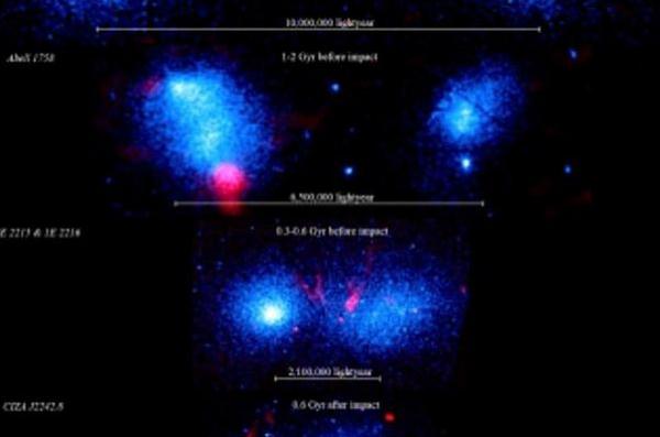 北京時(shí)間 6 月 27 日消息,一個(gè)研究小組在對兩個(gè)即將發(fā)生相撞的星系團結構進(jìn)行研究后,于是進(jìn)入發(fā)表論文,認為當星系相撞發(fā)生時(shí),可能會(huì )產(chǎn)生溫度高達 1 億攝氏度的沖擊波。