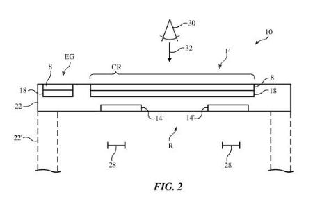 第一個(gè)專(zhuān)利申請名為“具有電可調光學(xué)層的電子設備”,涉及隱藏元件的想法。電子設備中可能需要傳感器、攝像頭和其他元件來(lái)驅動(dòng)某些功能,其中有些元件需要留有通向外界的孔徑才能正常工作。
