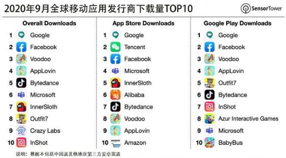 10 月 14 日消息 今日,移動(dòng)應用數據分析平臺 Sensor Tower 發(fā)布了最新研究報告,帶來(lái)了 2020 年 9 月全球移動(dòng)應用發(fā)行商下載量排行榜單。