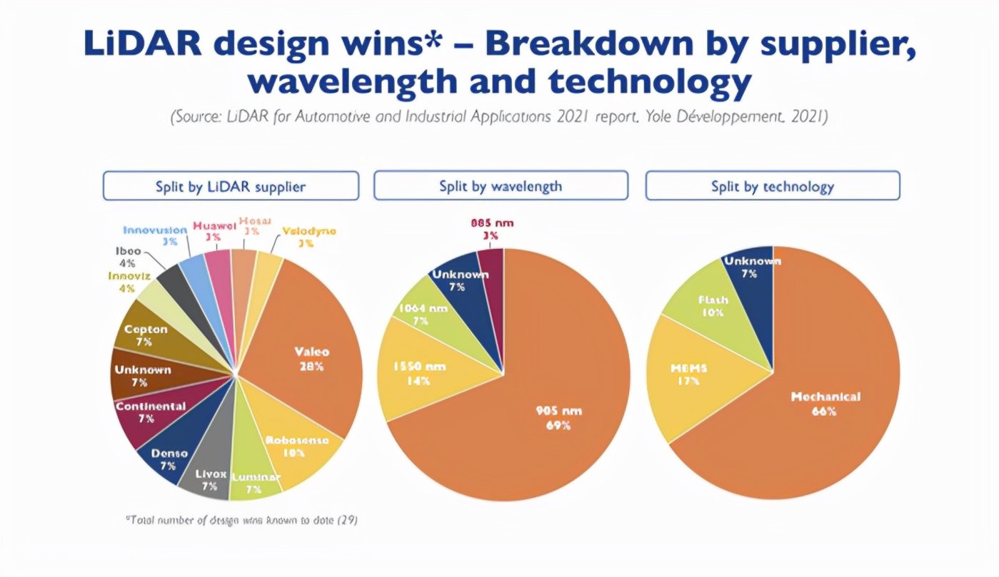 從 Yole 發(fā)布的最新數據來(lái)看,目前市場(chǎng)份額最高的 Valeo 也沒(méi)有超過(guò) 30%,而其他行業(yè)玩家僅有速騰聚創(chuàng )以 10% 居第二,其余玩家均為個(gè)位數的市占率,這表明市場(chǎng)格局仍然比較分散,不少玩家仍有機會(huì )。