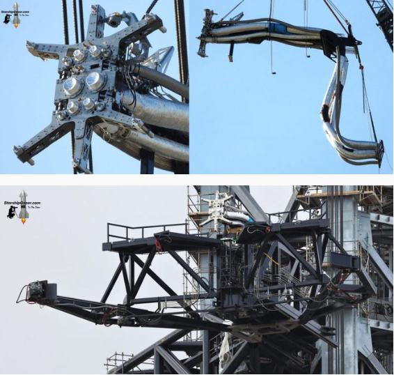 除了巨型機械臂之外,最近 SpaceX 還基本安裝完成位于發(fā)射塔中間部位的快速斷開(kāi)臂??焖贁嚅_(kāi)臂旨在為星際飛船提供燃料,并從頂部穩定超級重型助推器。其能夠左右開(kāi)合上下移動(dòng),能夠在火箭發(fā)射期間迅速打開(kāi),并在發(fā)射塔捕獲助推器或堆疊星際飛船系統時(shí)為巨型機械臂的移動(dòng)騰出空間。上周,SpaceX 技術(shù)人員將一千多米的絕緣鋼管從快速斷開(kāi)臂連接到發(fā)射臺的推進(jìn)劑儲罐。11 月 23 日,SpaceX 安裝完成能連接到星際飛船的快速斷開(kāi)機構。