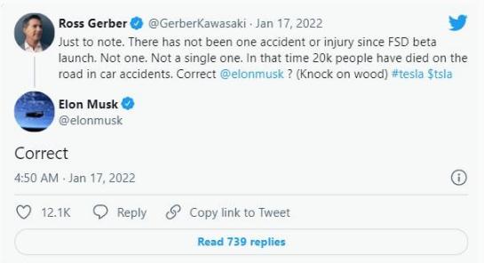 值得一提的是,特斯拉 CEO 埃隆·馬斯克(Elon Musk)還聲稱(chēng),自該公司在一年多以前推出了完全自動(dòng)駕駛(FSD)Beta 版軟件之后,參與該項目的車(chē)輛沒(méi)有發(fā)生過(guò)任何車(chē)禍。