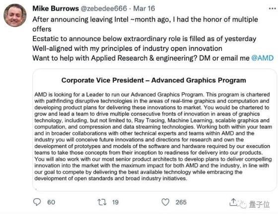 新的崗位也已確定——AMD 副總裁,負責 AMD 高級圖形程序。