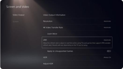 索尼表示,之前推出的 PS5 游戲將針對 VRR 進(jìn)行優(yōu)化,未來(lái)的游戲則可能在推出時(shí)就支持 VRR。用戶(hù)也可選擇將 VRR 套用至不支持該功能的 PS5 游戲,但可能效果會(huì )差一些,用戶(hù)可手動(dòng)選擇開(kāi)啟。