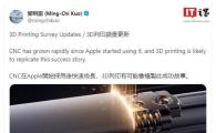 跟蹤蘋(píng)果產(chǎn)業(yè)鏈多年的分析師郭明錤今日發(fā)布報告指出,CNC(數控機床)在蘋(píng)果開(kāi)始采用后快速成長(cháng),3D 打印有可能會(huì )復制此成功故事。關(guān)鍵供應商為激光零部件的 IPG Photonics,以及 3D 打印機供應